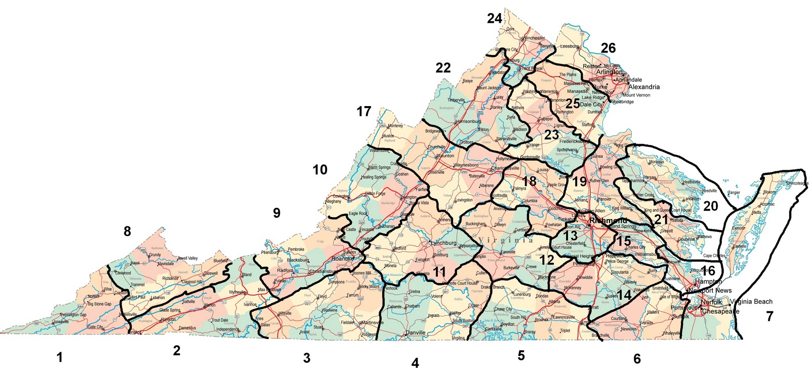Currently the Virginia Judicial Circuits look like this (click on pictures for bigger view):
